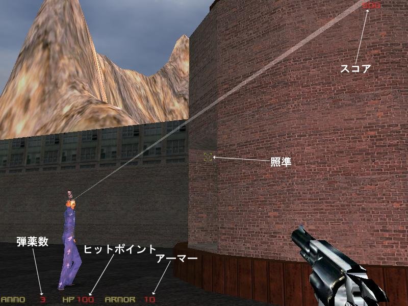 番号キーはテンキーではない方を押してください。また、武器とそれに対応する番号は以降の説明をご参照ください。HOMEを押すとジャンプし、ENDを押すとしゃがみますが、あまり使用しないと思います。